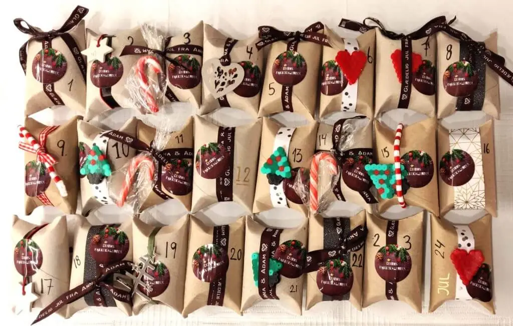 Køb dine egne klistermærker og gavebånd til at lave en helt personlig pakkekalender.