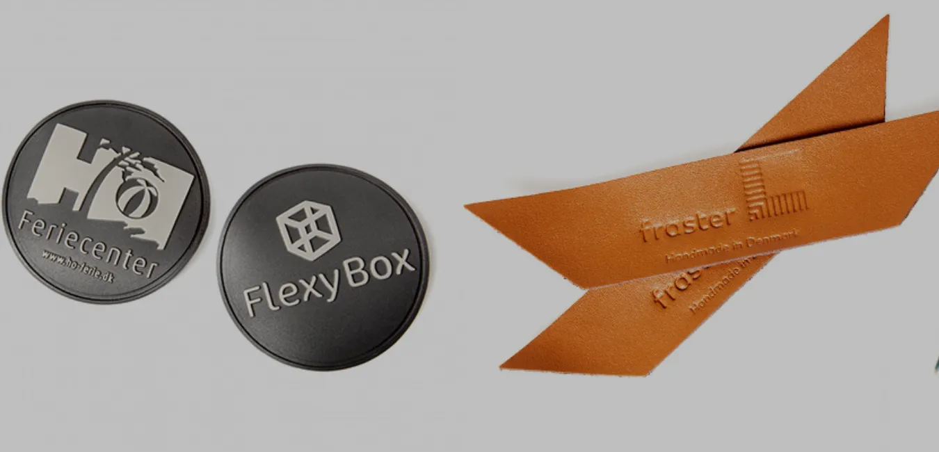 Læderlabels kan laves i ægte læder eller PU-læder. PU-læder kan produceres i alle Pantone C farvekoder. Vil du have ægte læder til dine læderlabels har vi et udvalg af standardfarver, der dog kan variere alt efter hvilken læder der er på lager. Spørg for flere informationer. Læderlabels kan laves graveret, ophøjet eller trykt. Eget design, egen størrelse og eget logo. Læderlabels kan leveres med huller eller med en rille langs kanten for påsyning. Selve designer kan være en kombination af graveret/ophøjet og trykt tekst. Kun fantasien sætter grænser.