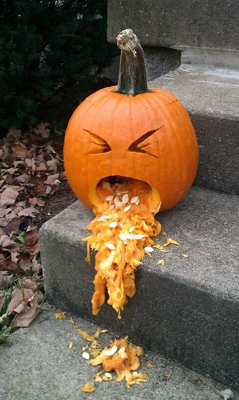 Man kan hurtigt få lidt kvalme af alt det slik, man får samlet ind til Halloween, og det opkastende græskar er lidt af en klassiker i den kreative græskargenre.