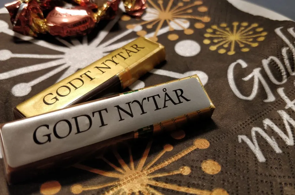 Med festklistermærker fra Ikast Etiket kan du give chokolader og desserter et festligt touch. Sæt klistermærkerne på chokolader eller små tandstikker og stik dem ned i kager og desserter. Det er dig, der bestemmer tekst og billeder på festklistermærkerne. Du kan lave frække, skøre, sjove, søde eller helt enkle klistermærker med teksten 2024. Det er helt op til dig. Du kan også lave festklistermærker eller navnelapper med gæsternes navne, som du bruger til bordkort eller på glas, så hver enkelt gæst, kan kende sine eget glas hele natten.